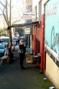 There are some cool places to dine on Oxford Street in Paddington .I like the little cafe just around the corner on Crown Street/Goulburn Sts called Pablo’s Vice. Very tiny, very cool. It opens early.Everything on the menu is good and inexpensive.Of course they are far too cool to have a website or even a phone so here is a picture of the front so you know what to look for: