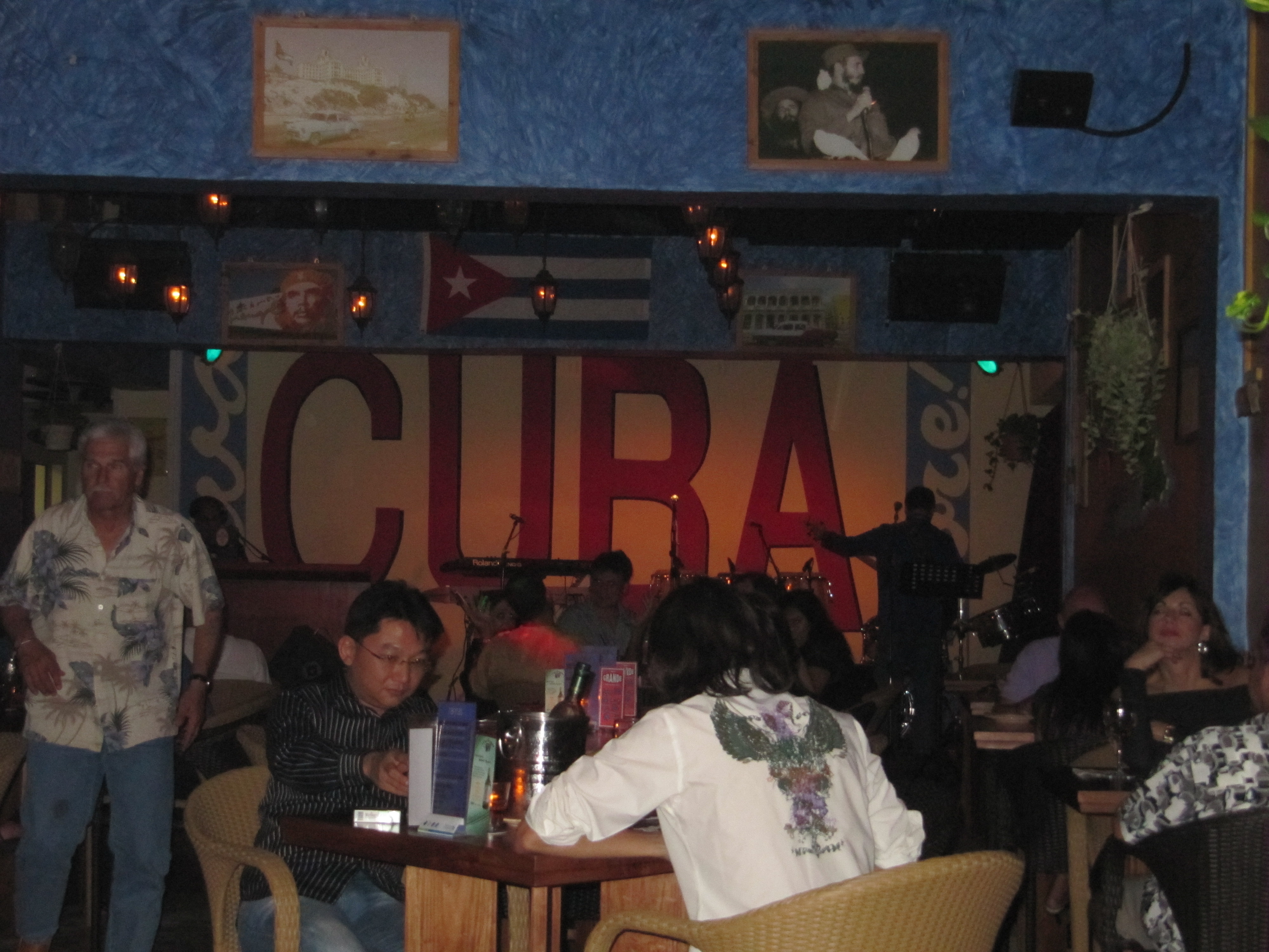 The Cuba Libre bar and cafe was a very exciting find for a Cubanophile such as myself. Unfortunatley, the kitsch Cuban interior didn’t match the menu. It’s all very good food but only 1 or 2 things (besides the cigars and cocktails) that are actually Cuban – the rest is Puerto Rican, Italian or Brazilian with some fajitas thrown in – I shouldn’t complain, I love their fajitas.It’s all good stuff but I recommend the Pollo Empanado and the Melon Tree. The menu is a Havana licence plate! Lovely mojitos and great music – enough reason for me to make a repeat visit.