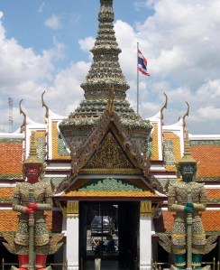 ♦ The Grand Palace of Bangkok is about 230 years old – fairly new by Thai standards, and it is a fascinating and sacred place including an armery, a mint (I don’t think it’s still functioning) and the temple that houses the famed Emerald Buddha. It’s beautiful, gold, bejewelled and glittery and I love it!
