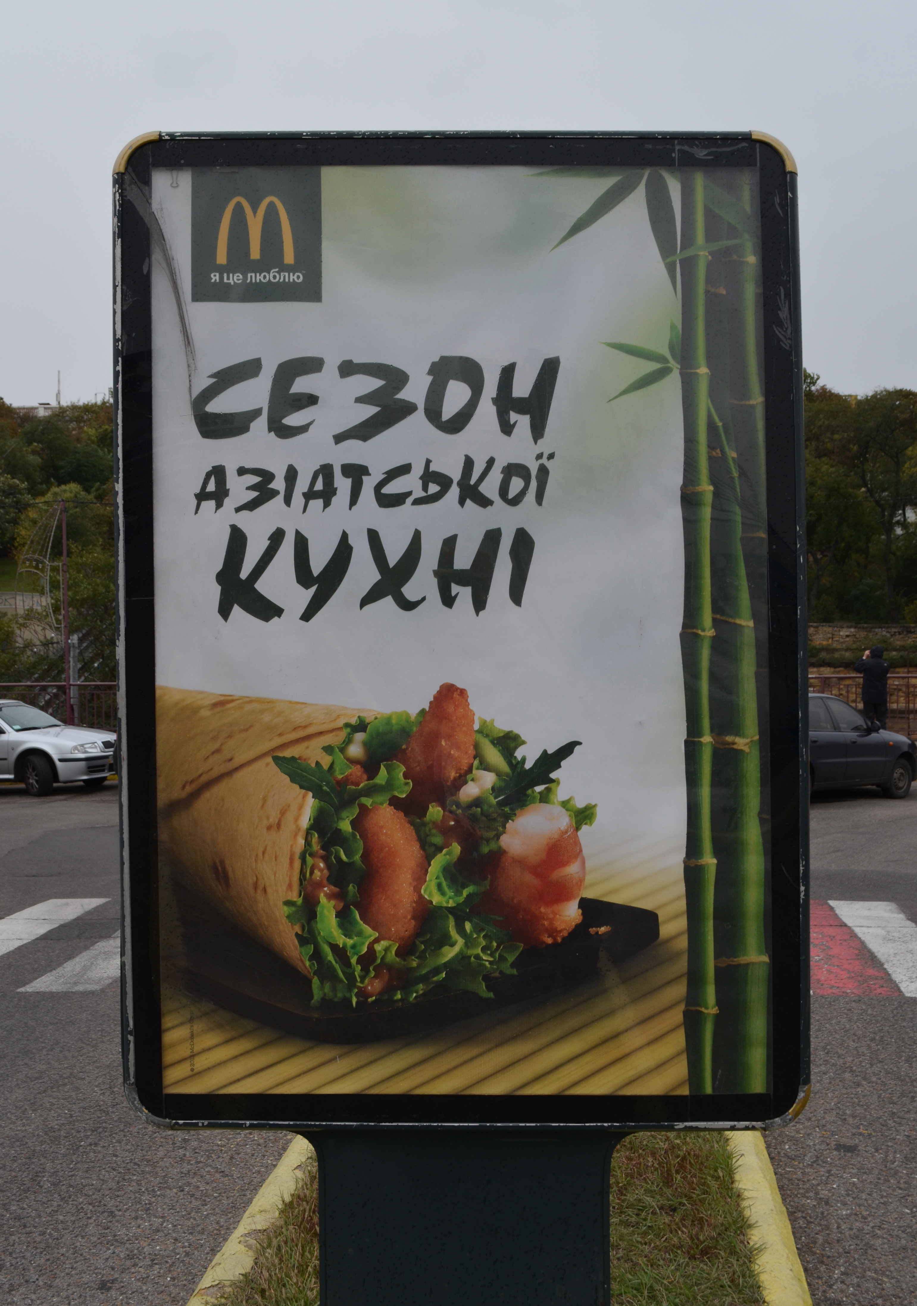 Odessa is the Ukraine’s most cosmopolitan city: the restaurants lining the beautiful, tree-lined streets downtown offer every type of cuisine. Of course, McDonald’s has to compete with them, so they have their own international menu. Last year they dabbled in Asian Fusion.